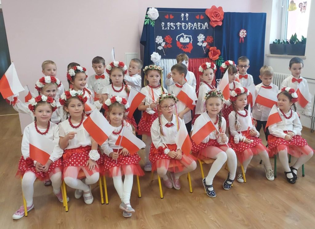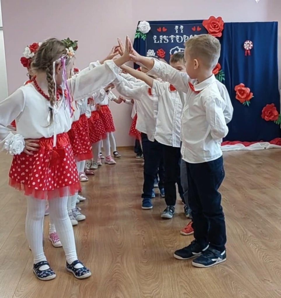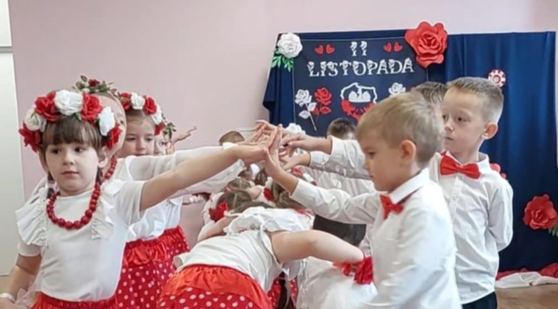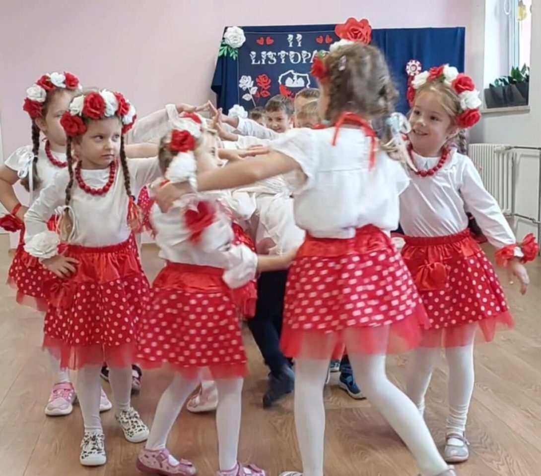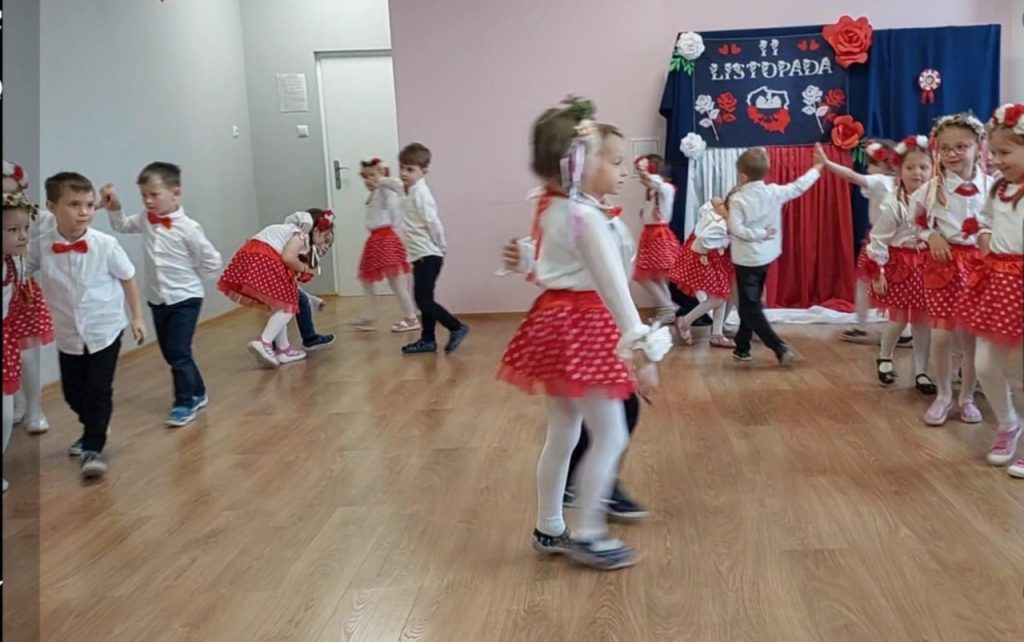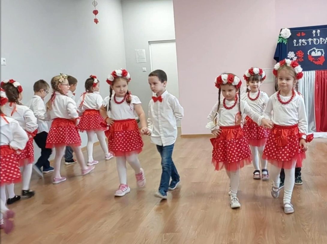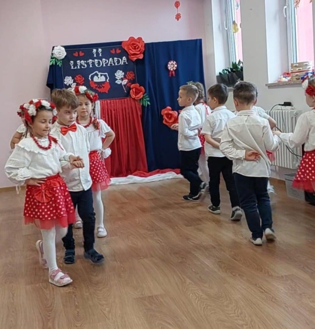 Dziś 7 listopada w naszym przedszkolu zapanowała niezwykła, wzruszająca atmosfera… Już od pierwszych chwil uroczystości serca wszystkich biły mocniej, gdy dzieci rozpoczęły akademię pięknym polonezem – tańcem pełnym elegancji, dumy i polskiego ducha.
