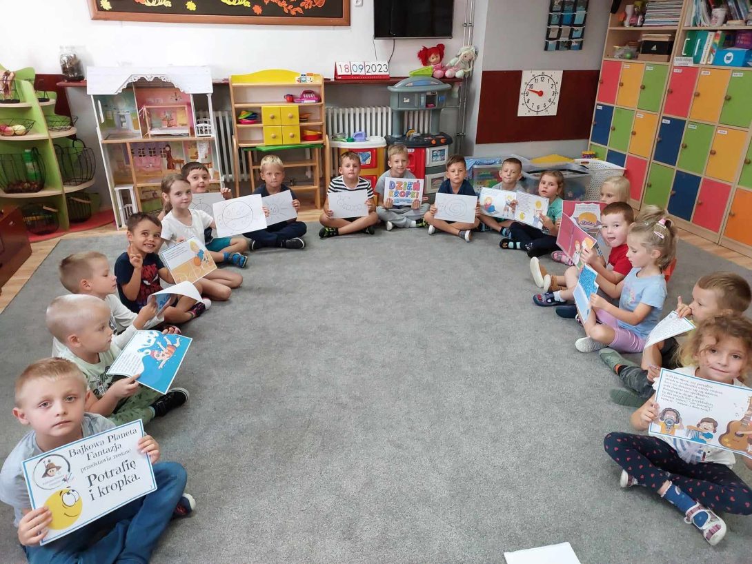 Międzynarodowy Dzień Kropki (15.09), to święto kreatywności, odwagi i zabawy. To szczególny dzień, w obchody którego przyłączyła się grupa IV „Leśne Duszki”. Podczas zajęć dzieci wysłuchały opowiadania „Potrafię i kropka” Bajkowej Planety Fantazji przedstawiającego historie bohaterów, którzy uwierzyli w siebie, i na podstawie którego powstało wiele prac plastycznych. Prace plastyczne pomogły w podsumowaniu obchodów tego święta i ukazały, że nawet mała, niepozorna kropka może być początkiem czegoś wielkiego, gdyż każdy z nas jest „twórcą” samego siebie.