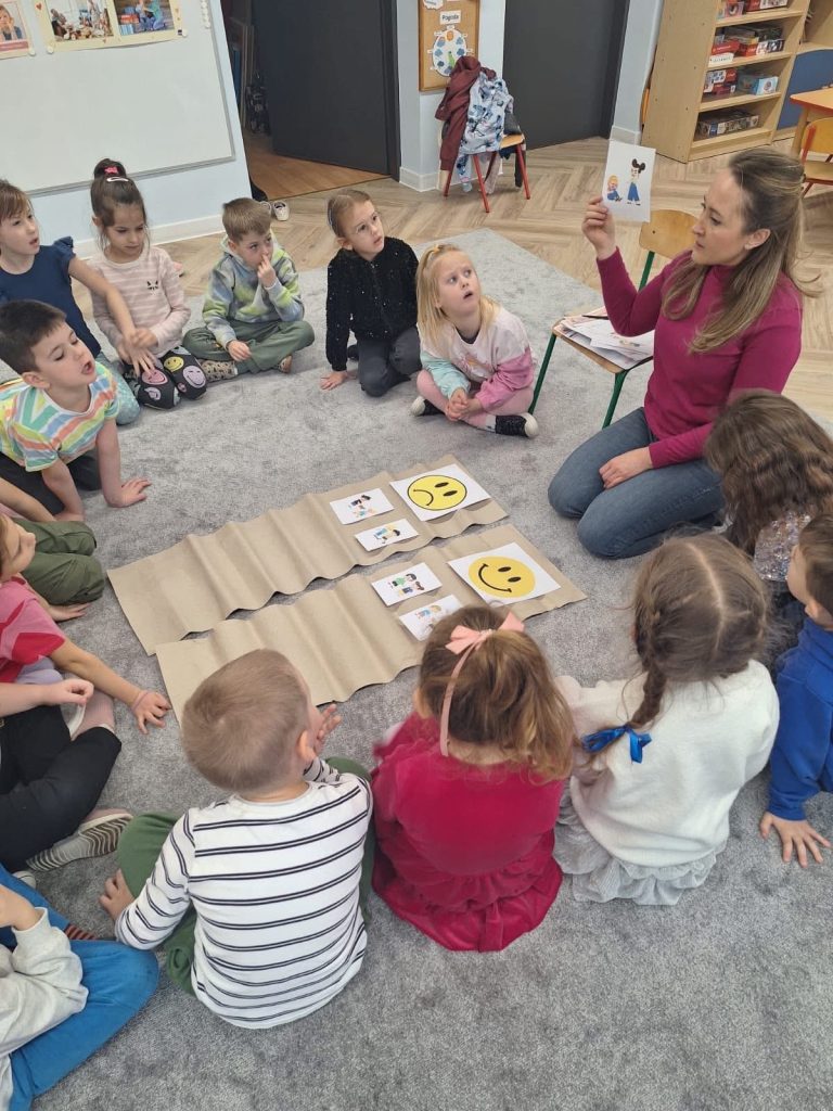 W naszym przedszkolu w grupie Smerfy i Leśne Duszki odbyły się zajęcia poświęcone bezpieczeństwu w relacjach z rówieśnikami, które przeprowadziła pani psycholog.