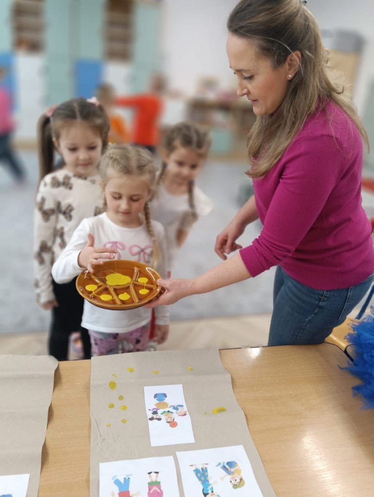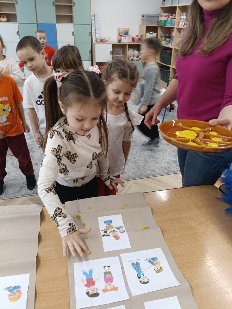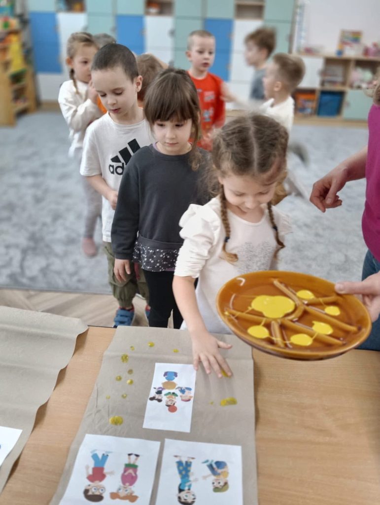 Na zakończenie dzieci oznaczyły planszę dobrych zachowań odciskami palców, traktując ją jako kontrakt na dobre zachowanie w grupie. Był to ważny moment budowania tolerancji, szacunku i współpracy.