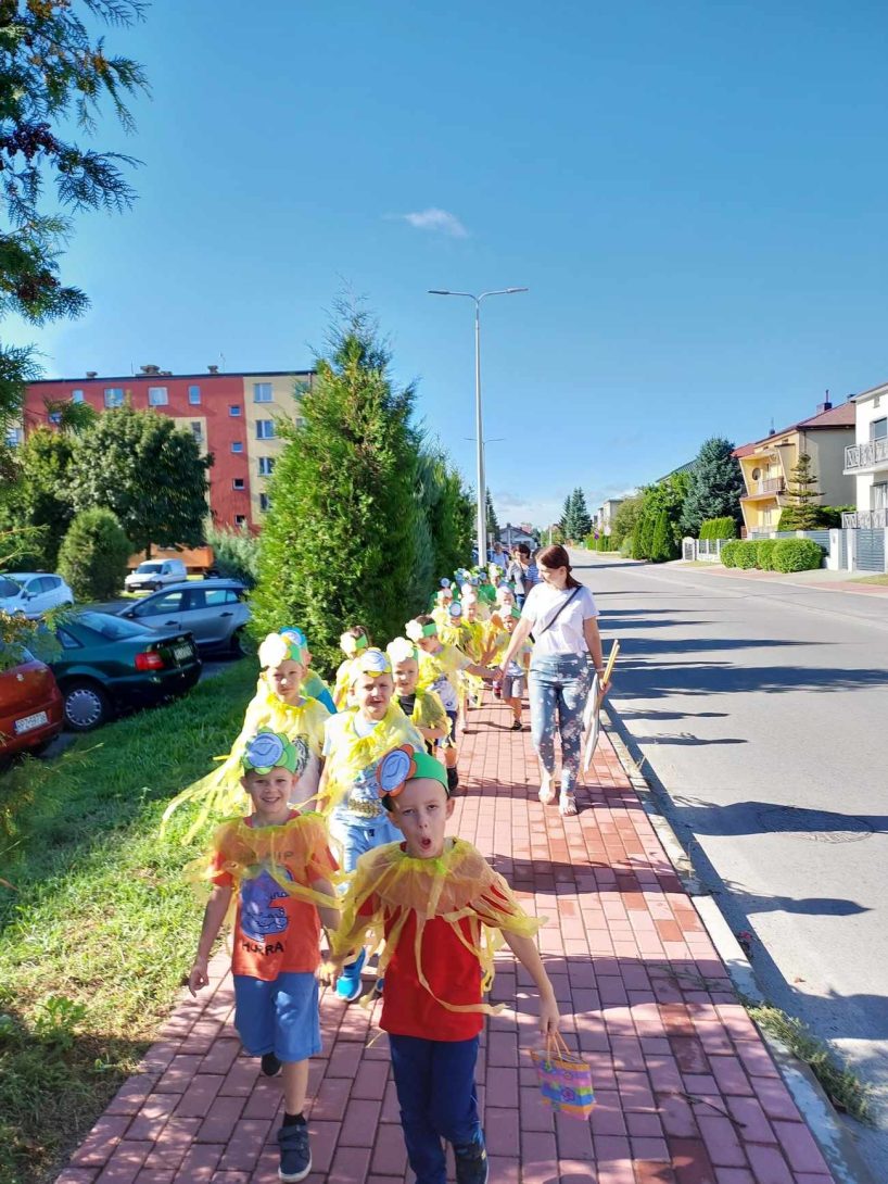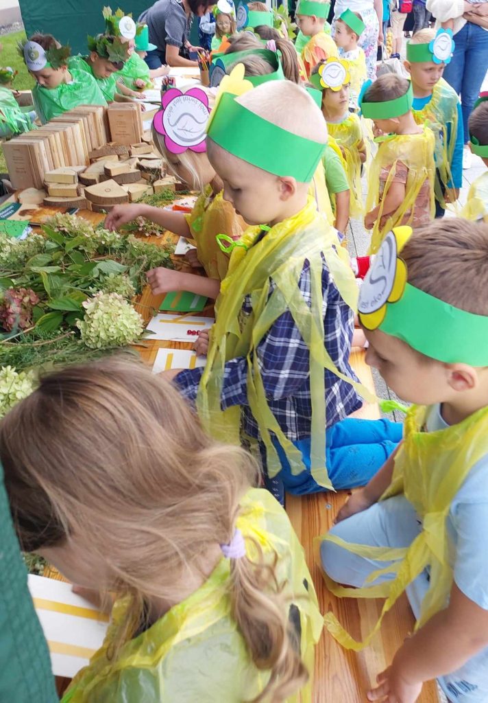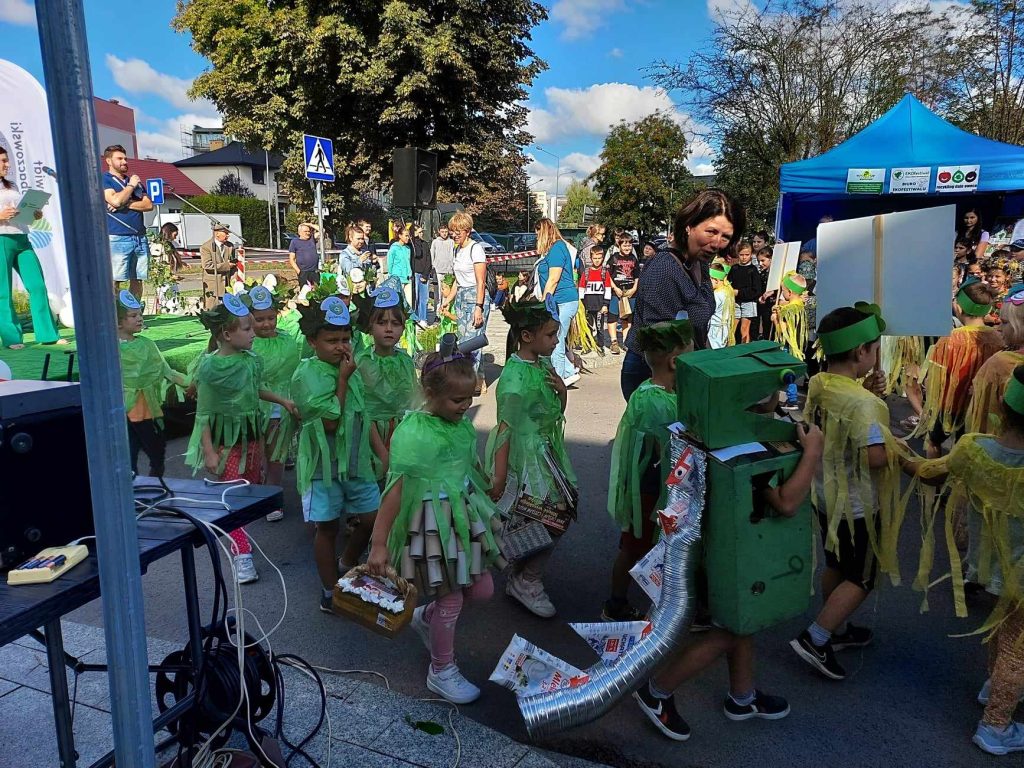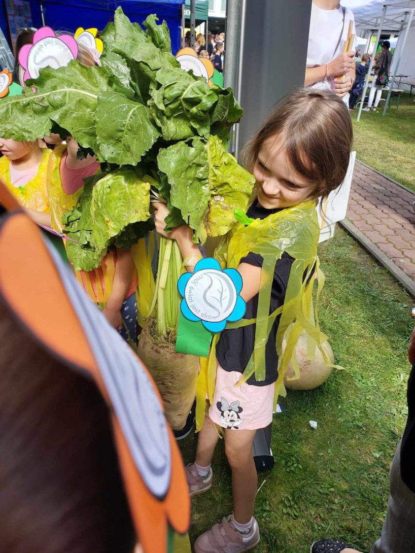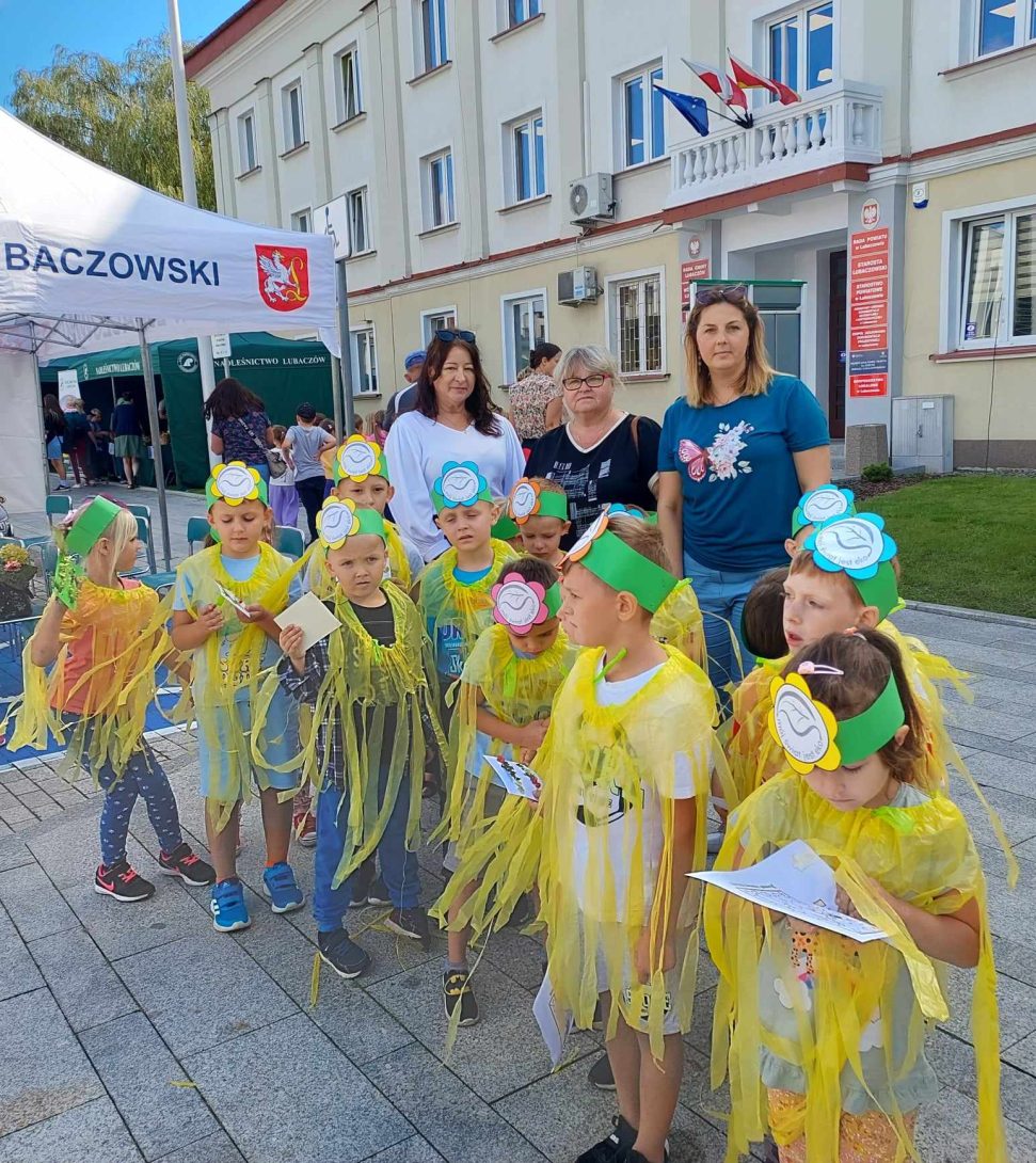 15 września 2023 r. zerówkowicze z grupy III „Smerfy” i IV „Leśne Duszki” brali udział w EKOfestiwalu zorganizowanym przez Starostwo Powiatowe w Lubaczowie i Stowarzyszenie Geoturystyczne Roztocze Wschodnie. Przedszkolaki wzięły udział w pokazie mody „Eko – moda” i spektaklu ekologicznym Teatru Kultureska pt. „Kosmolenie ratują Ziemię”. Po seansie uczestniczyły w licznych stoiskach i warsztatach edukacyjnych. Po raz kolejny podziękowania przesyłamy do dzieci i rodziców, dzięki którym udało się wymienić elektrośmieci na 53 sadzonki drzew, które w większości dzieci zabrały do domu i na pewno wyrosną z nich piękne drzewa. Dodatkową atrakcją EKOfestiwalu było zdobycie I miejsca w pokazie mody, wszystkim współzawodnikom konkursu dziękujemy i pozdrawiamy.