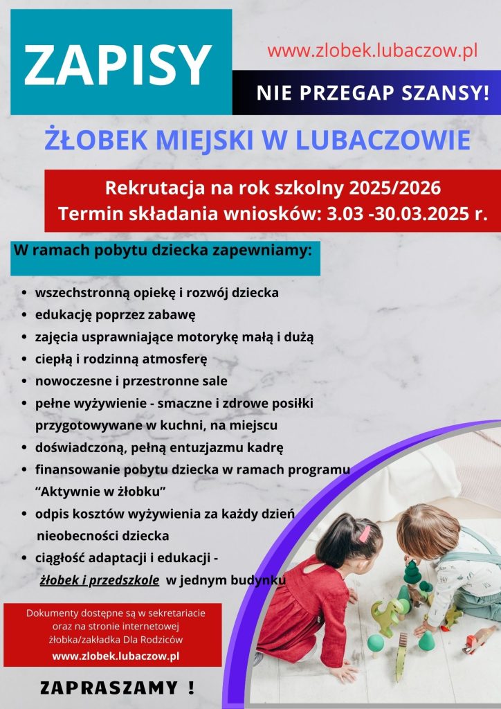 Serdecznie zapraszamy do składania wniosków do Miejskiego Przedszkola Nr 2 w Lubaczowie. Zachęcamy również do zapoznania się z ofertą Żłobka Miejskiego.
