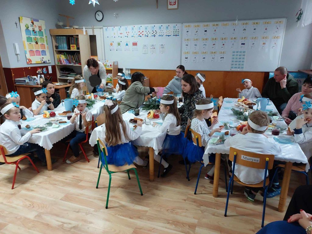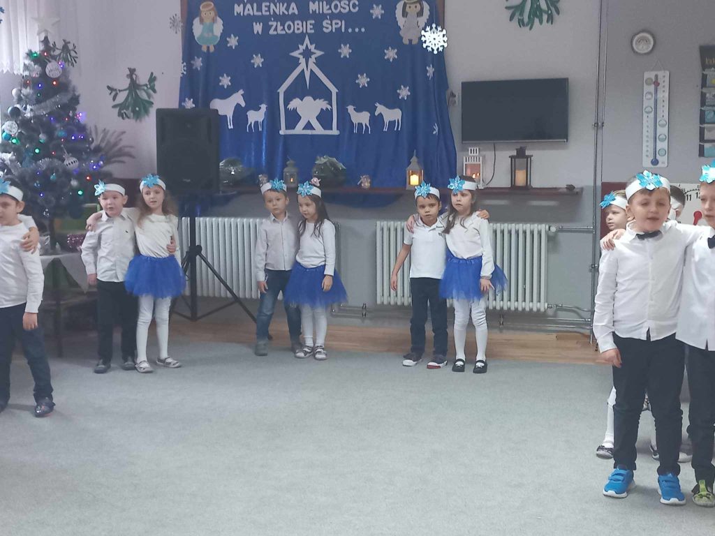 „Maleńka Miłość w żłobie śpi…” tak brzmiało hasło dzisiejszego spotkania świątecznego w grupie „Leśne Duszki”. Rodzice, rodzeństwo i zaproszeni goście mogli wysłuchać i obejrzeć przygotowany montaż słowno-muzyczny.