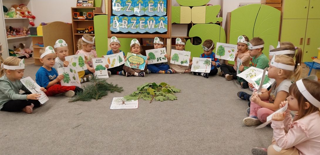 Światowy Dzień Drzewa – święto natury i zabawy. W dniu 10 października grupa,,Żabki” obchodziła światowy dzień drzewa. Wyjątkowe święto, które przypomina nam jak ważną rolę w naszym życiu odgrywają drzewa. To one dają nam tlen, cień, schronienie dla zwierząt i piękno, które możemy podziwiać każdego dnia. Celem ,,Światowego Dnia Drzewa” było kształtowanie postaw proekologicznych oraz uświadamianie znaczenia drzew dla życia ludzi, zwierząt i całej planety podczas zajęć Dzieci poznały rodzaje drzew oraz budowę drzewa. Rozpoznawały gatunki drzew po liściach i igłach, dotykały ich. Nie zabrakło również zabaw edukacyjnych. Wielką frajdę sprawiły dzieciom puzzle o tematyce drzew. Dzieci rozwijały spostrzegawczość cierpliwość i umiejętność współpracy. Na zakończenie zajęć przedszkolaki wykonały piękne prace plastyczne, których tematem przewodnim były drzewa. Dzień upłynął w miłej atmosferze pełnej uśmiechów i radości.