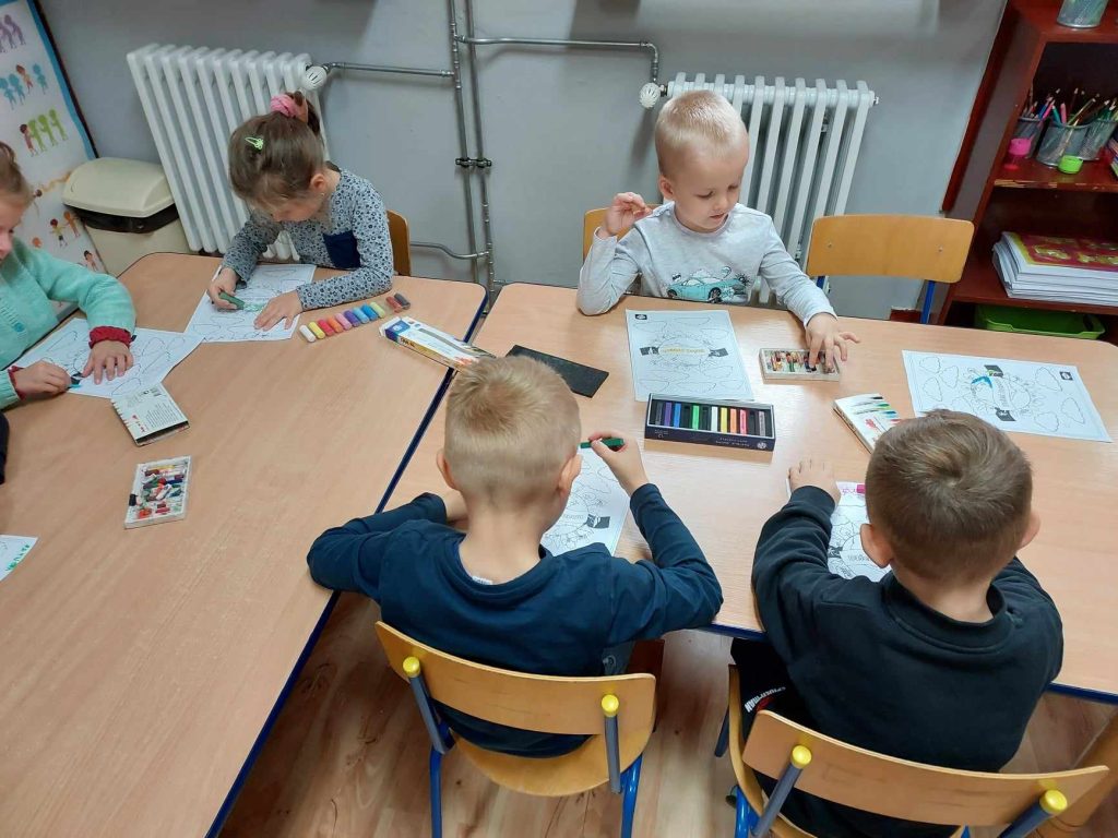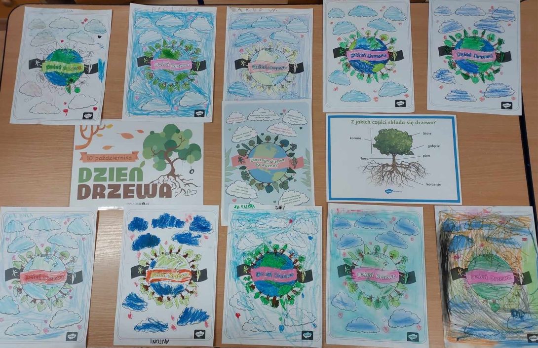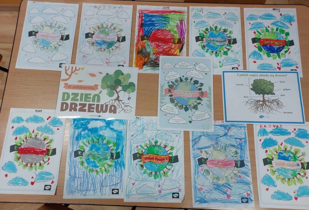 Od wielu lat w Polsce 10 października obchodzony jest „Dzień Drzewa”. Głównym celem świętowania jest podejmowanie działań proekologicznych, kształtowanie odpowiedzialnej postawy wobec świata przyrody, oraz poszerzanie zasobu wiadomości na temat środowiska przyrodniczego. Po obejrzeniu filmiku o drzewach i lasach, dzieci dowiedziały się, jaką ważną rolę spełnia drzewo wobec człowieka i środowiska, zapoznały się z nazwami rodzimych gatunków drzew oraz ich owocach i ich właściwościach zdrowotnych. W skupieniu wykonały pracę plastyczną z użyciem pasteli.