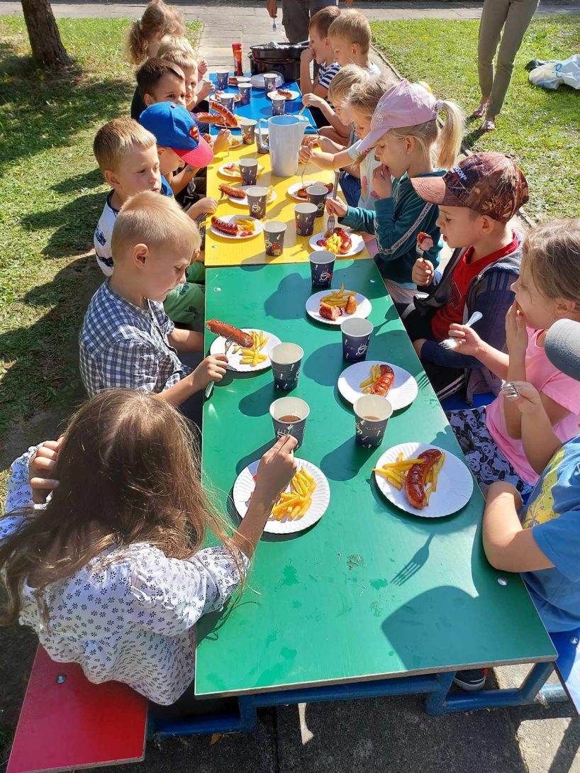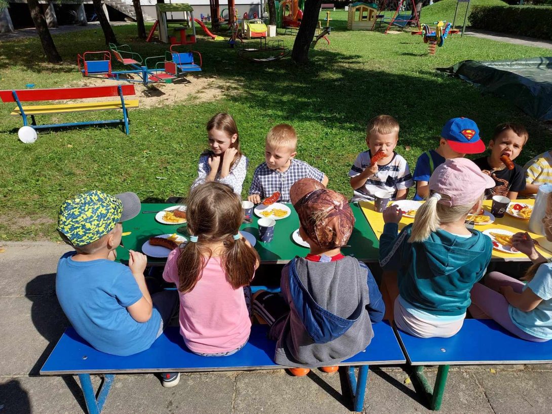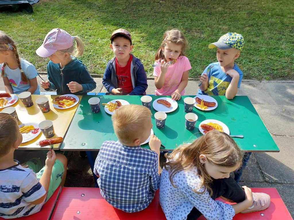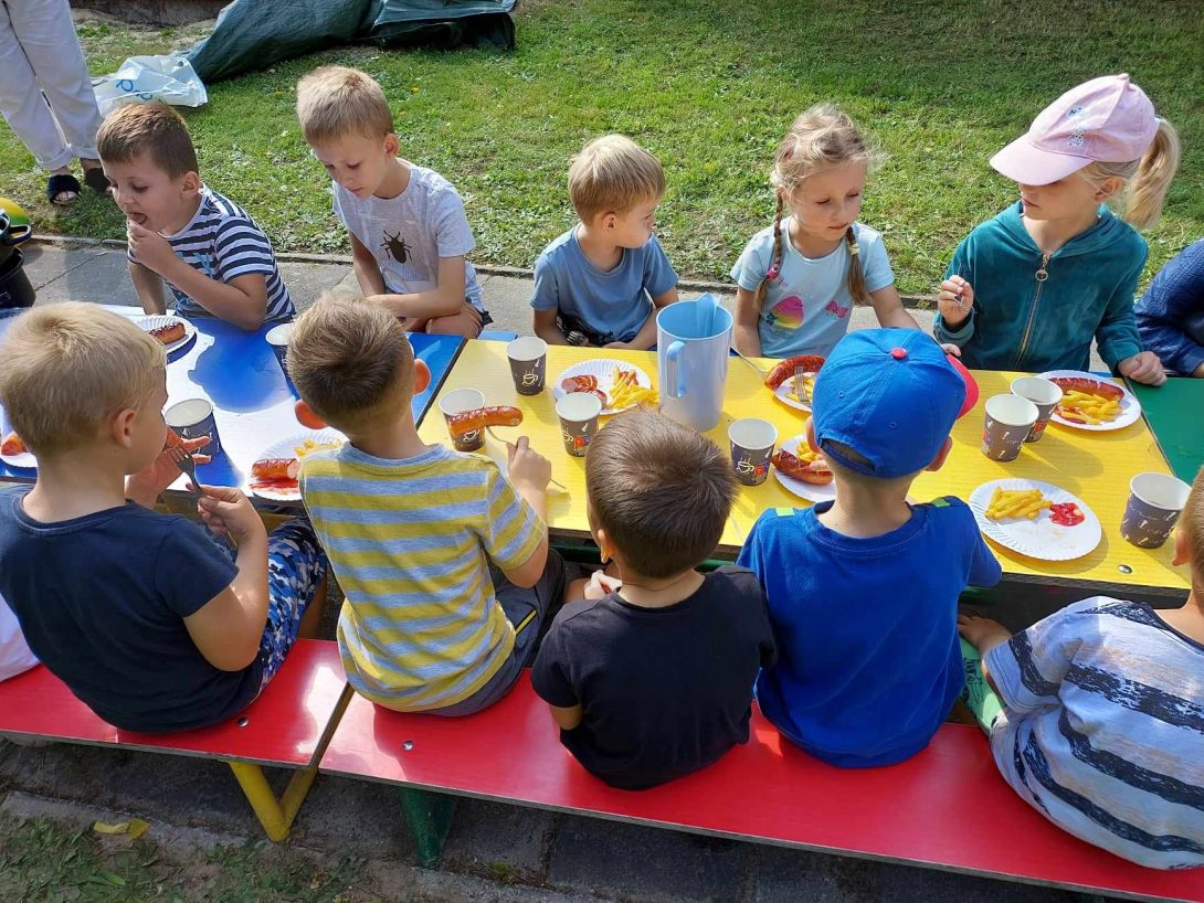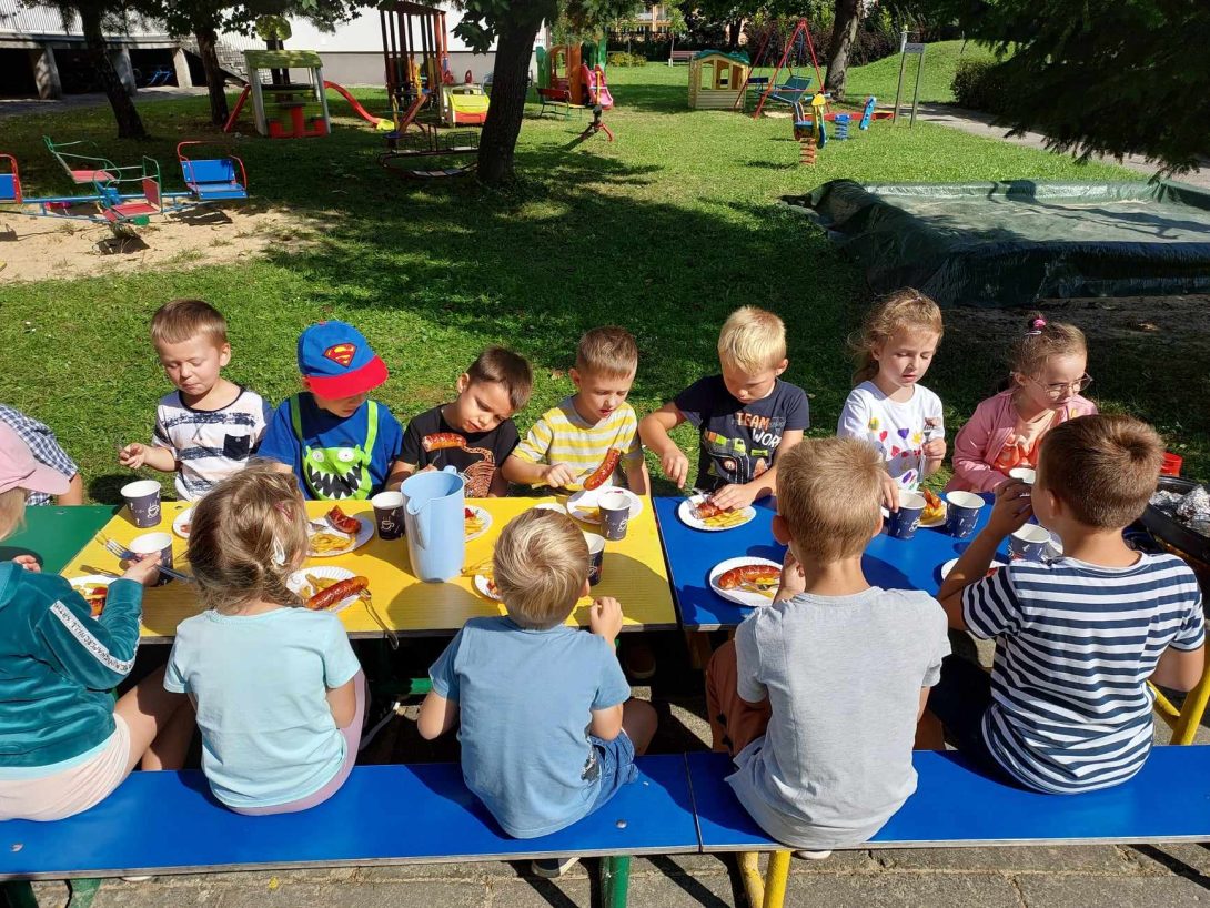 Tradycyjnie we wrześniu obchodziliśmy w naszym przedszkolu „Święto Pieczonego Ziemniaka”. W piątek korzystając z pięknej pogody tańcom i zabawom na świeżym powietrzu nie było końca. Dziecięce przeboje muzyczne, zapachy upieczonej kiełbaski i przypieczonych ziemniaków dodały apetytu naszym dzieciom.