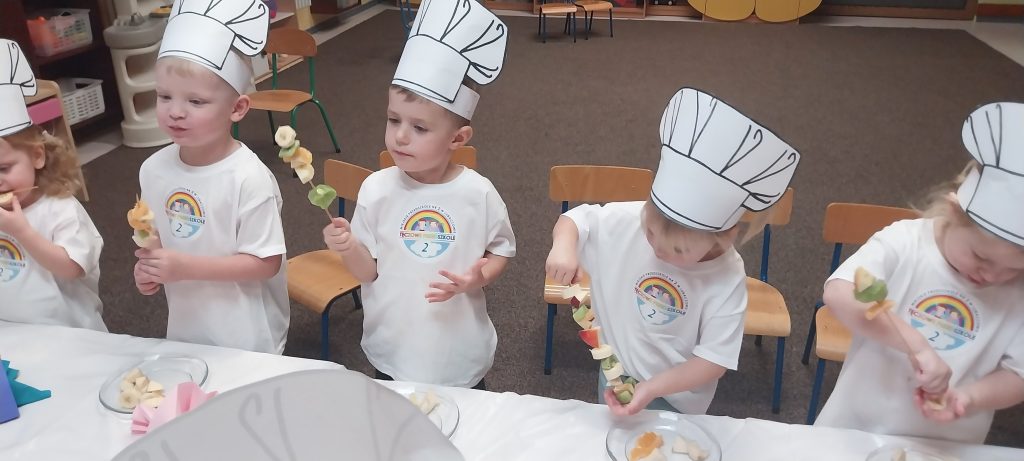 W naszym przedszkolu było bardzo smacznie i zdrowo. Maluszki uczestniczyły w zajęciach kulinarnych, przygotowywały pyszne owocowe szaszłyki. Była to świetna okazja do powtórzenia nazw owoców, poznania ich zapachów i smaków. Dzieci chętnie wybierały, komponowały i nabijały na patyczki swoje ulubione owoce tworząc pyszne i zdrowe szaszłyki owocowe. Warsztaty sprawiły dzieciom ogromna radość. Dziękuję wszystkim rodzicom za zakup różnorodnych owoców.