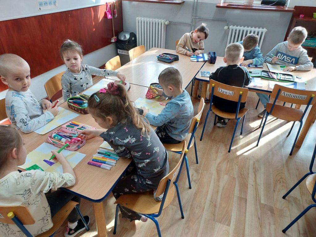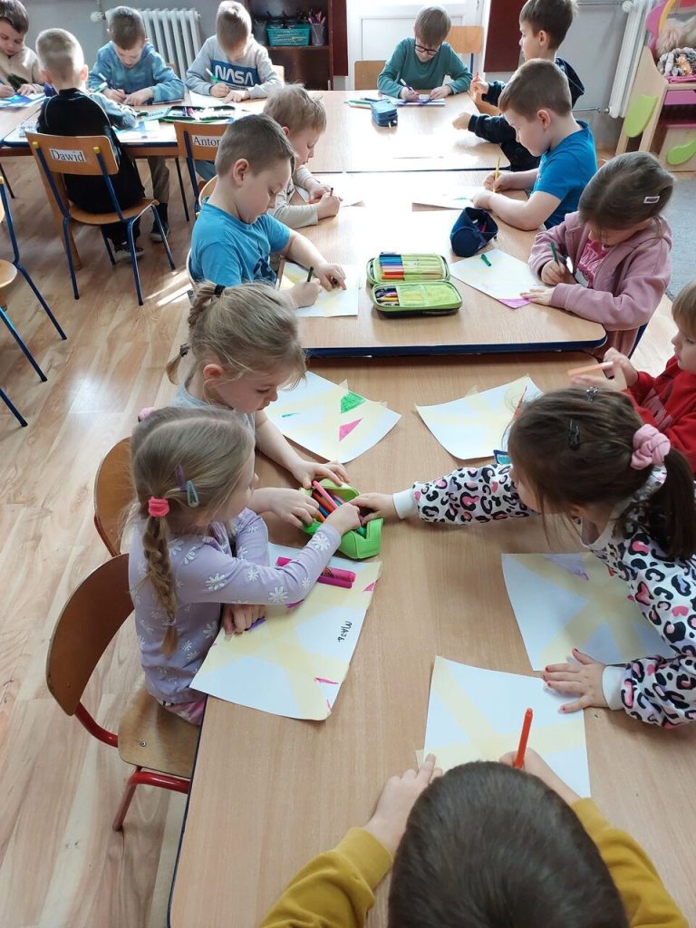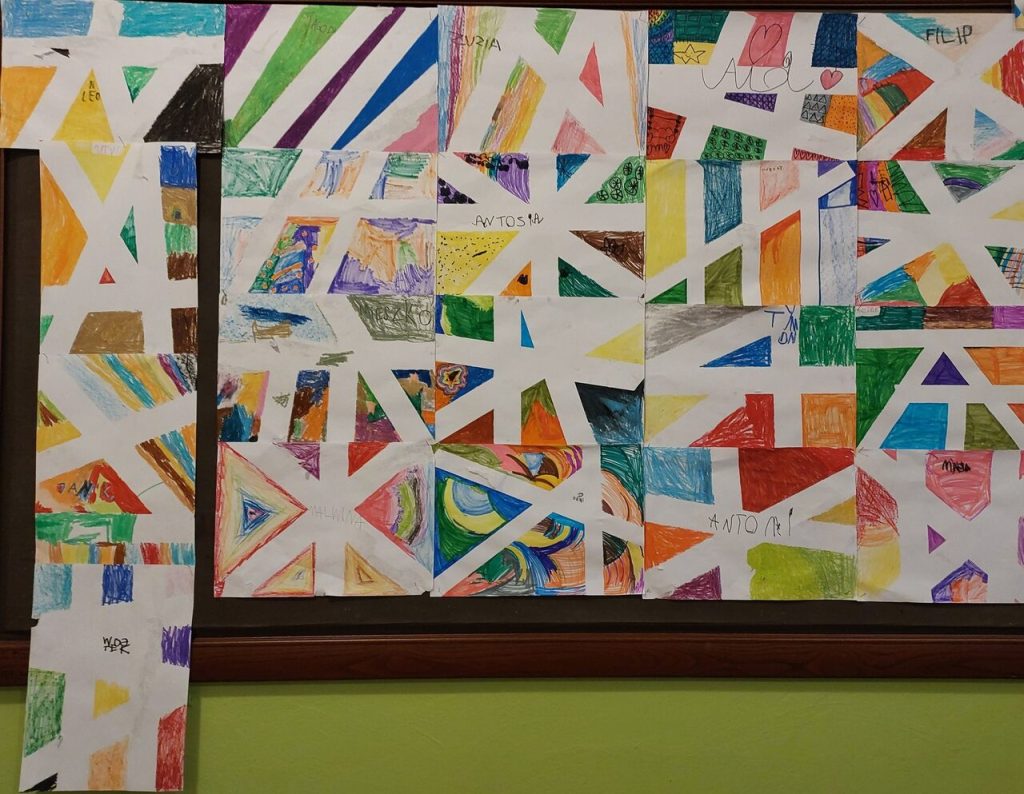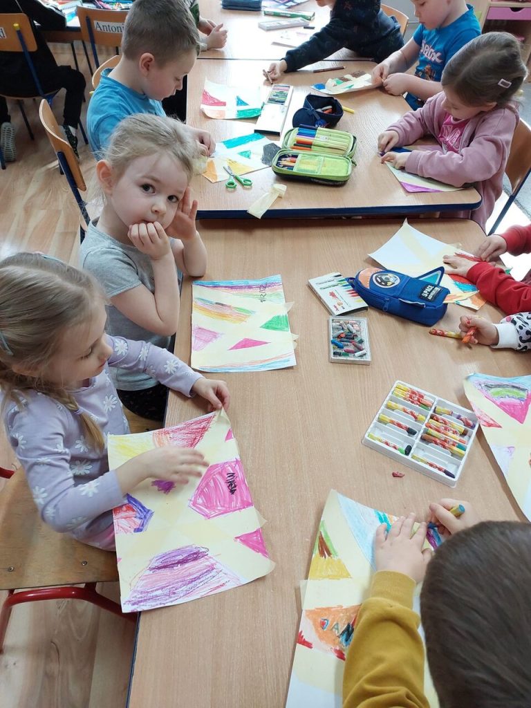 Czym jest „sztuka”? Co w sobie zawiera, i jakie niesie korzyści dla rozwoju społecznego i emocjonalnego. Taką wiedzę dzieci przyswoimy podczas kompleksu zajęć „Witamy się ze sztuką”. Powstały piękne geometryczne obrazy, które wzbudzały ogromną ciekawość i podekscytowanie podczas odklejania taśmy malarskiej 🤗