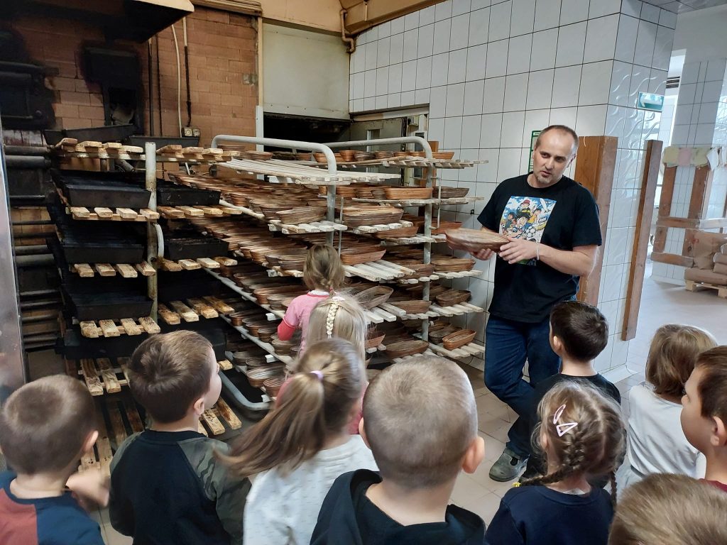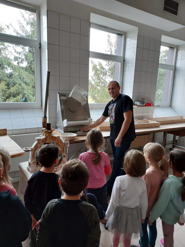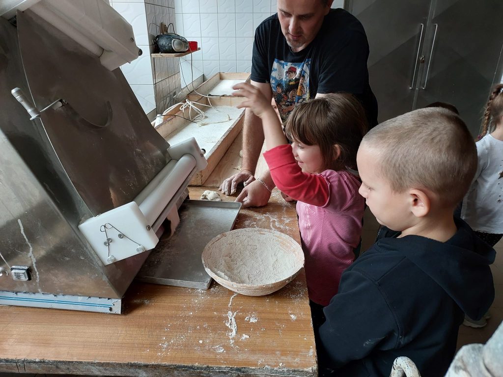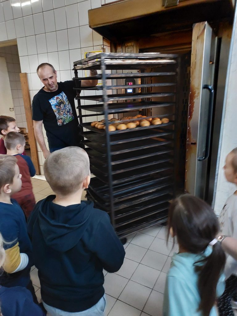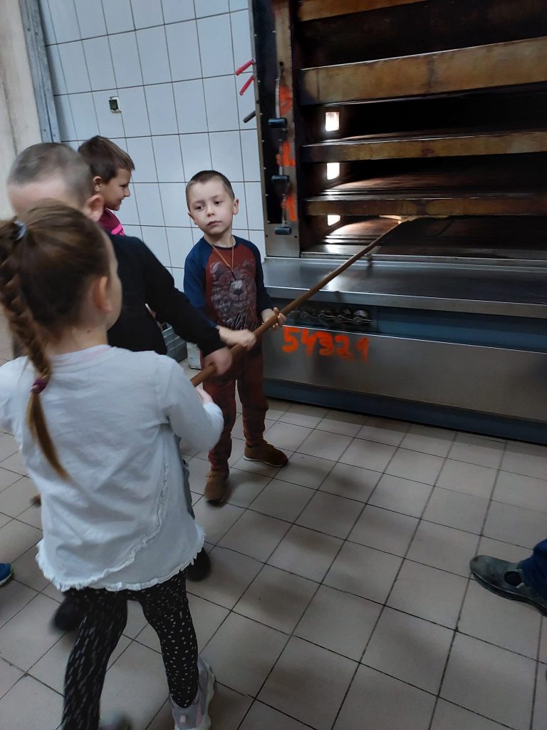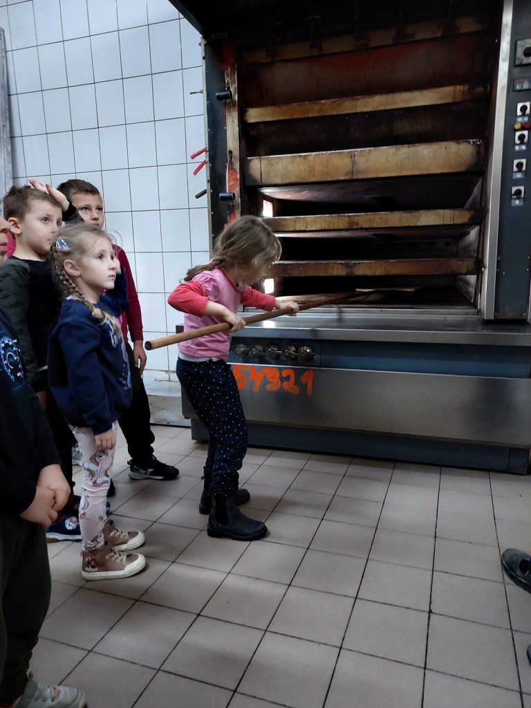 Dzieci z grupy IV „Leśne Duszki” w środę (26.10) odwiedziły Piekarnię Miejską Spółdzielnię „Samopomoc Chłopska” w Lubaczowie. Dzięki Panu Adamowi Radwanowi dzieci mogły poznać tajniki zawodu piekarza, jak przebiega proces wyrobu i wypieku pieczywa oraz ciastek. Dzieci z wielkim zaangażowaniem słuchały i wyrabiały rogale/bułki, które zajadały ze smakiem.