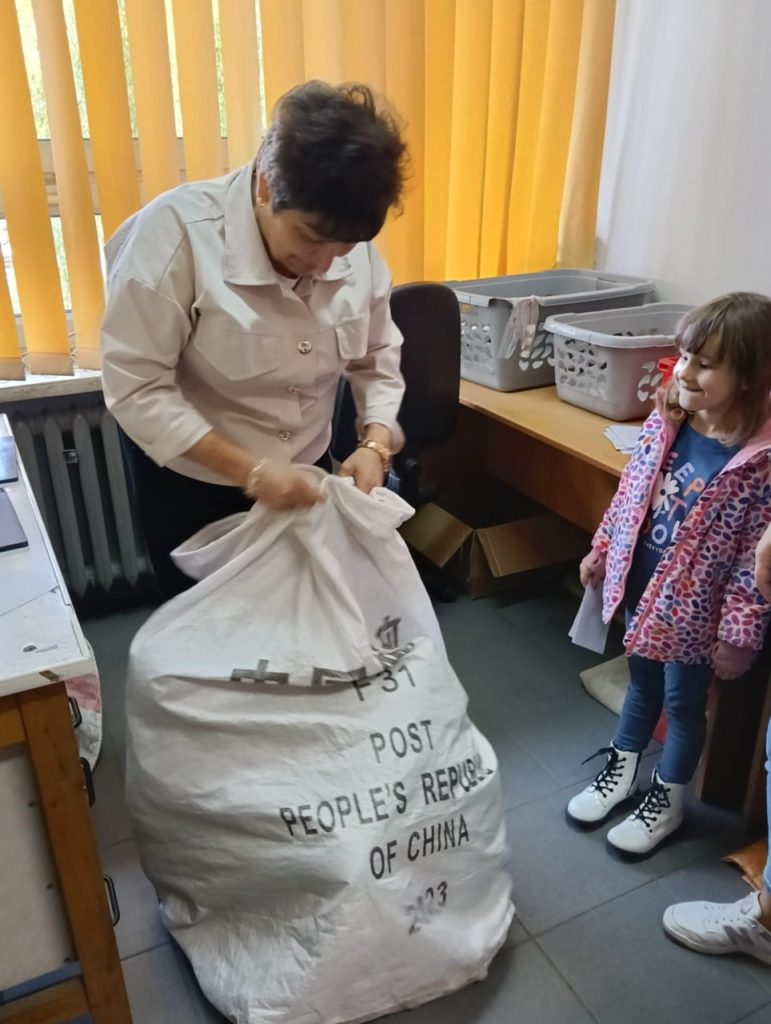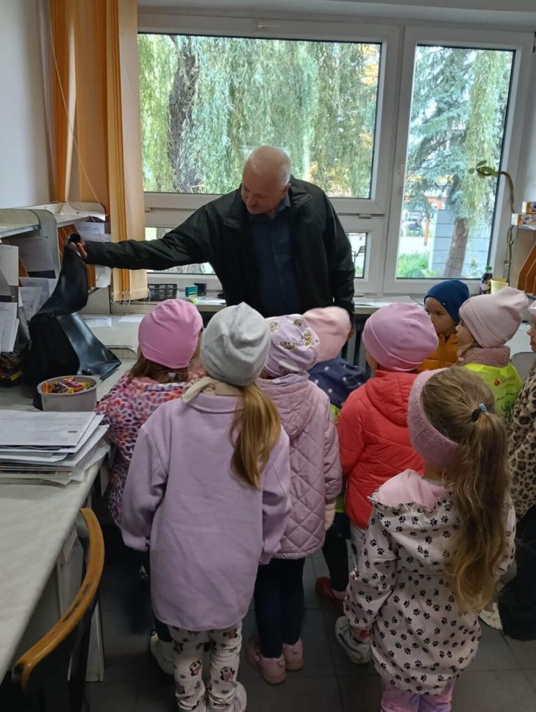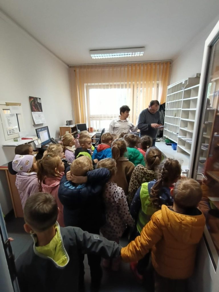 Zobaczyliśmy, jak wygląda wyposażenie poczty – wagi ⚖️, znaczki 💌, koperty 📦 i wielkie worki na listy 📯.