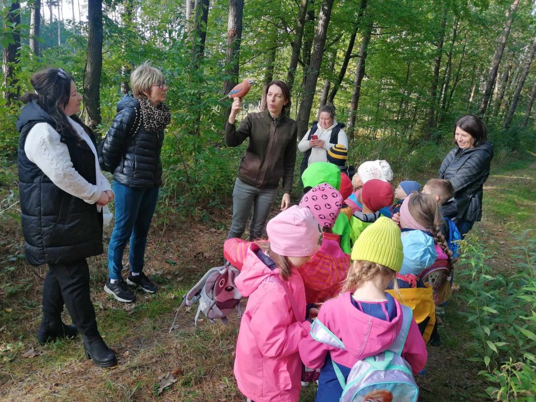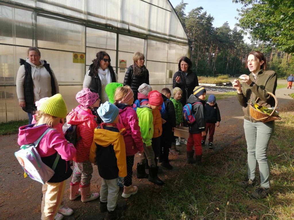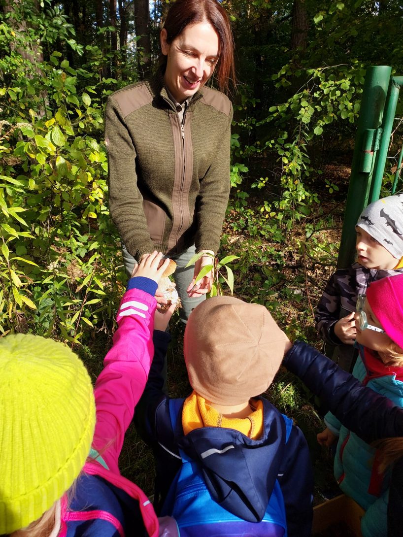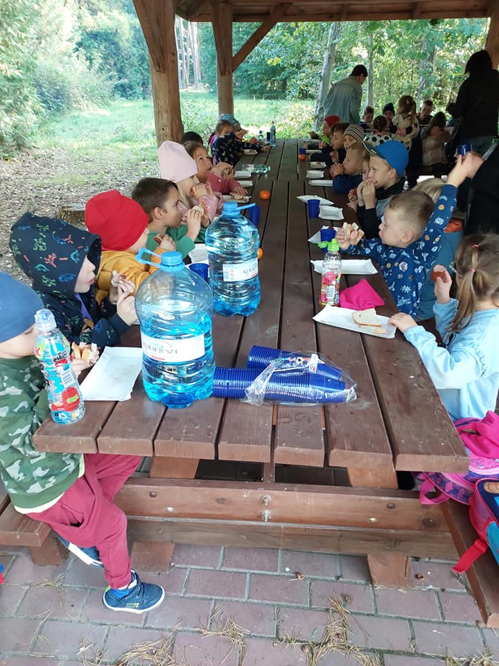 Nasze najstarsze przedszkolaki (gr. „Smerfy” i gr. „Leśne Duszki”) odwiedziły dziś szkółkę leśną „Sikorówka”. Pod przewodnictwem p. Katarzyna Marko mogliśmy poznać gatunki najpopularniejszych drzew (buk, sosna, dąb), ptaków leśnych (m.in. wilga, dzięcioł, sikorka, sójka) oraz sposób na wezwanie pomocy, gdybyśmy zgubili się w lesie. Po super przechadzce po lesie i urodzajnych zbiorach grzybów, udaliśmy się na odpoczynek i pyszną kiełbaskę. To był „…mega fajny dzień”, tak dzieci podsumowały dzisiejszy wyjazd i spędzony czas na świeżym powietrzu 🤗