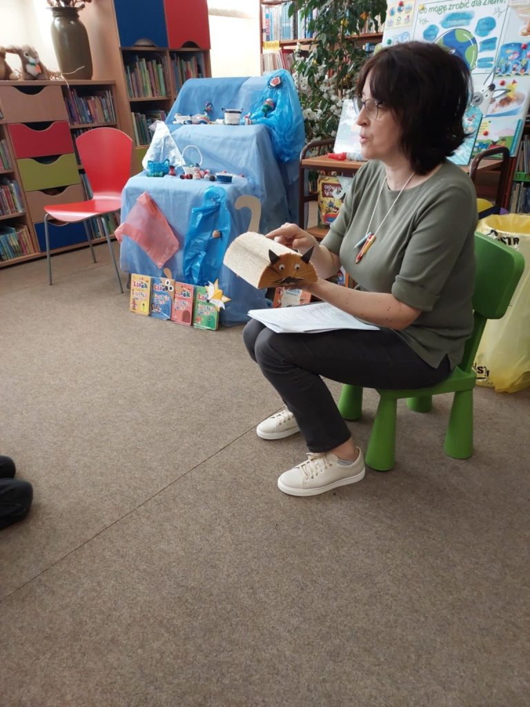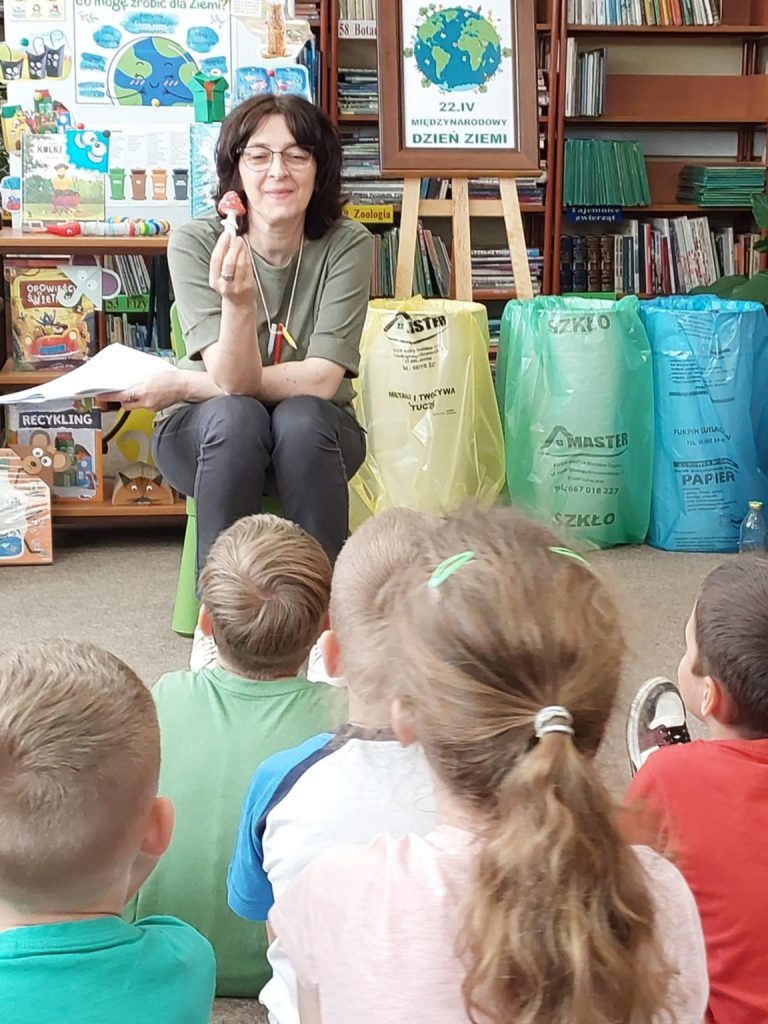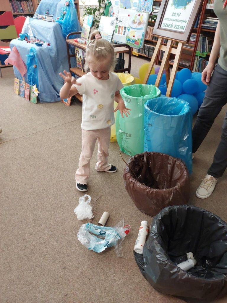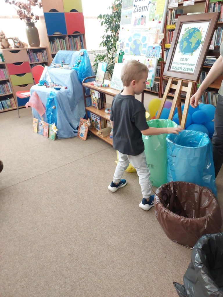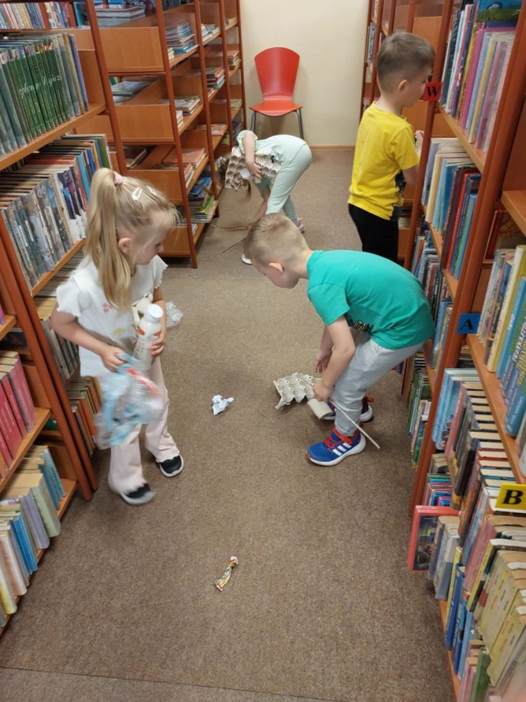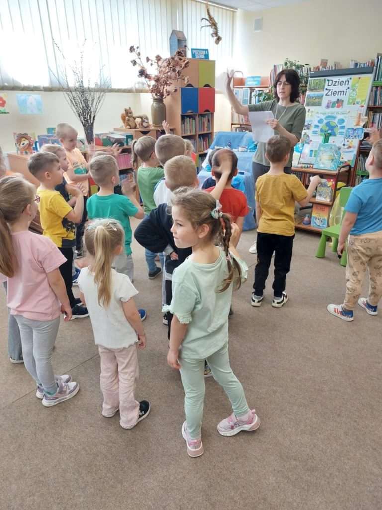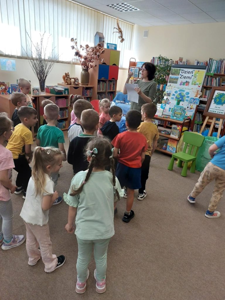 W czwartek (24.04.2025 r.) nasze przedszkolaki wybrały się do Miejskiej Biblioteki w Lubaczowie na zajęcia o tematyce ekologii. Dzieci z uwagą wysłuchały i aktywnie uczestniczyły podczas opowieści ruchowej, odpowiadały na zadane zagadki, a także pomogły w „posprzątaniu” odpadów, które „ktoś” rozsypał, a następnie je posegregowały. Zajęcia w bibliotece zawsze są interesujące i na długi czas pozostają w pamięci dzieci. Serdecznie dziękujemy za zaproszenie.