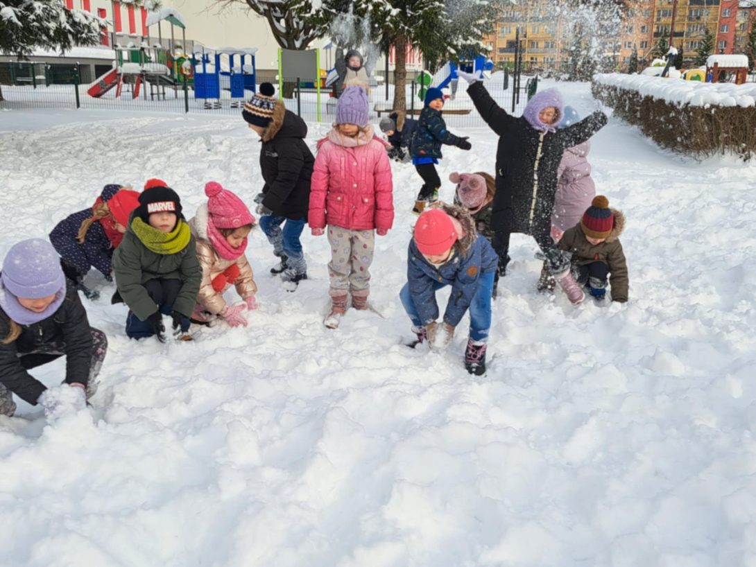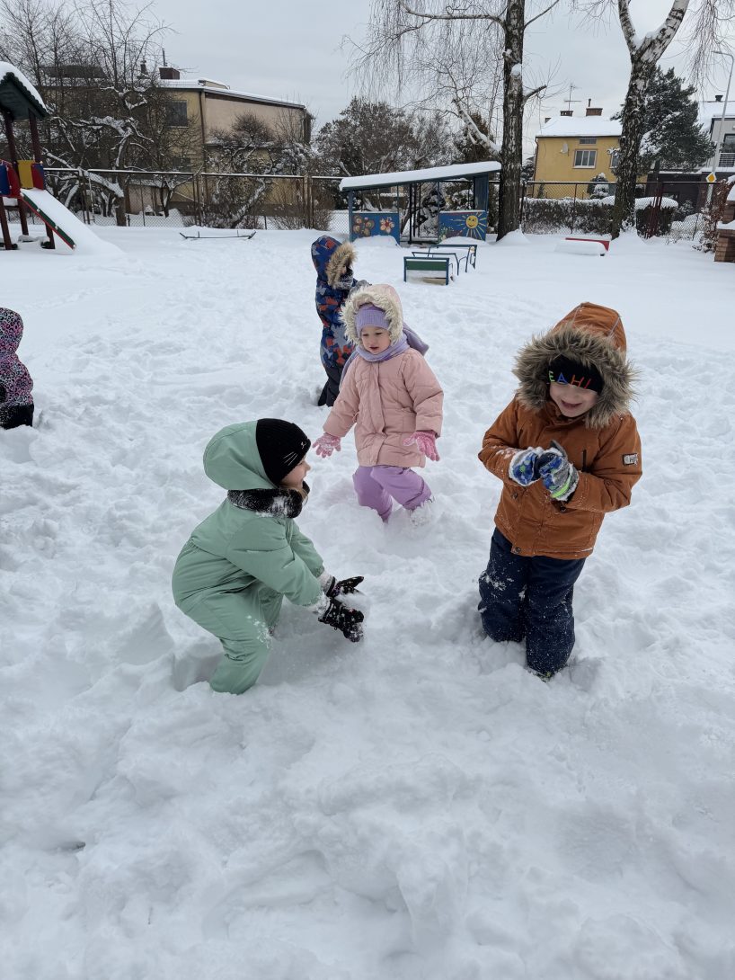 Nasze przedszkolaki korzystają z uroków zimy pełnymi garściami! Podczas spacerów na świeżym powietrzu nie brakuje radości, śmiechu i aktywnej zabawy na śniegu. Śnieżne harce i odkrywanie zimowej przyrody to dla dzieci nie tylko świetna frajda, ale także doskonała okazja do ruchu i hartowania organizmu.